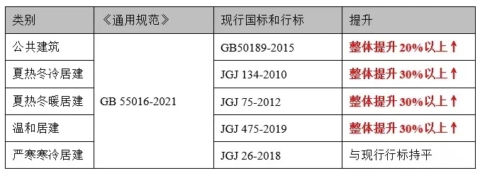 5.新建建筑節(jié)能設計水平進一步提升。《通用規(guī)范》提高了居住建筑、公共建筑的熱工性能限值要求,與大部分地區(qū)現(xiàn)行節(jié)能標準不同,平均設計能耗水平在現(xiàn)行節(jié)能設計國家標準和行業(yè)標準的基礎上分別降低30%和20%。